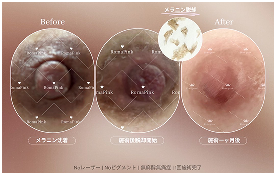 蓄積したメラニン除去でくすみ・黒ずみをケア 肌本来の自然なピンク色へ導きます。100%植物由来の薬剤のため安全性も確立。