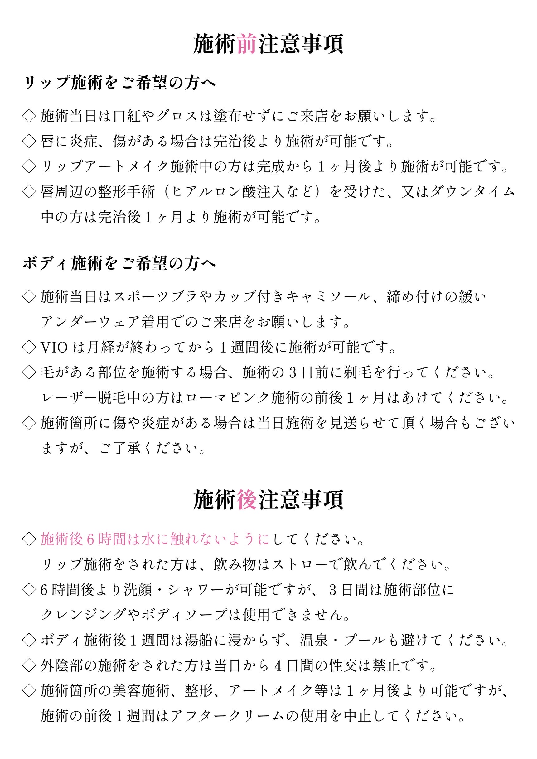 ※施術日の前日に施術箇所の剃毛をお願いします。されていない場合、1部位¥1,000の剃毛料金が発生します
